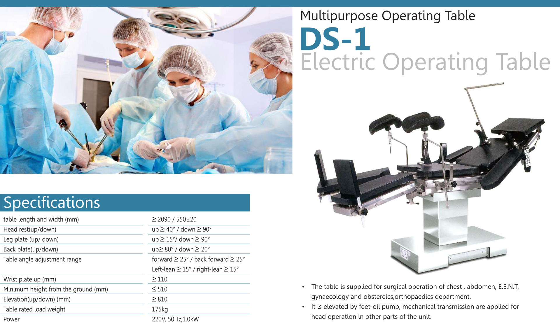 Multi-Purpose electric operating table GEA DS-1 merupakan meja operasi multifungsi yang memenuhi berbagai kebutuhan pengoperasian. Meja operasi ini disediakan untuk operasi bedah dada, perut, THT, ginekologi, kebidanan dan ortopedi.